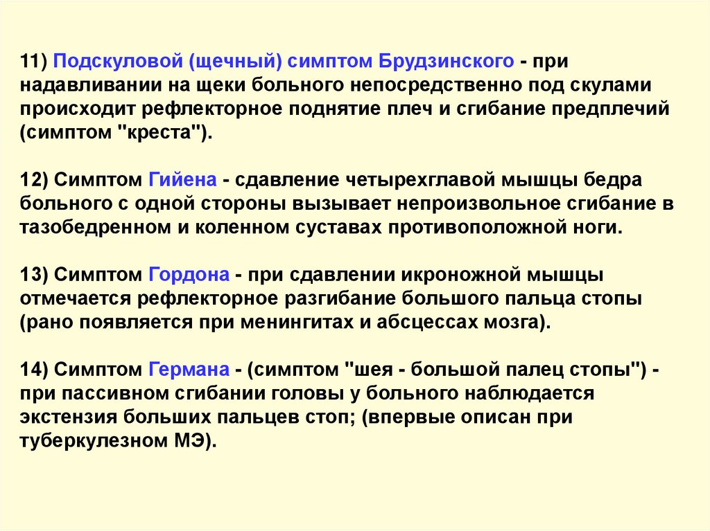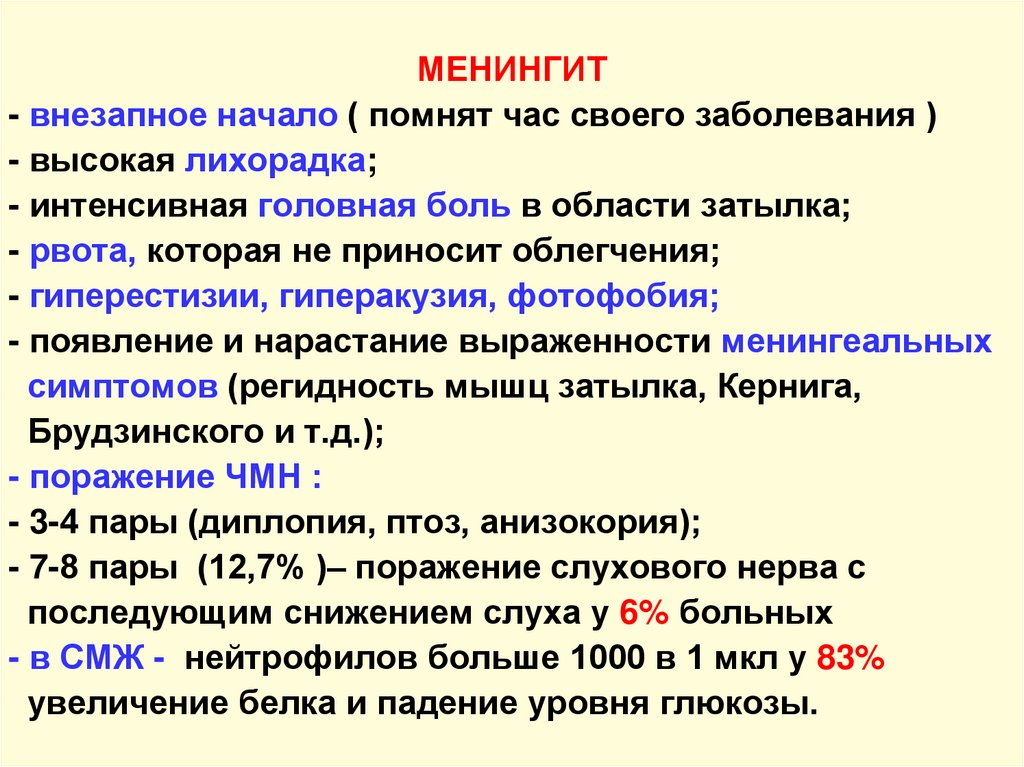 оболочечных (менингеальных) симптомов.