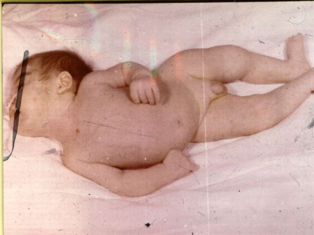 живот ладьевидно втянут (менингеальная поза).