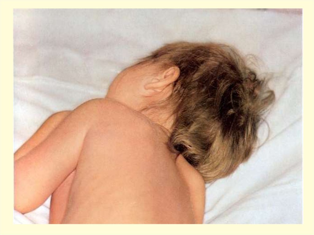 3) Ригидность затылочных мышц - попытка пассивно
