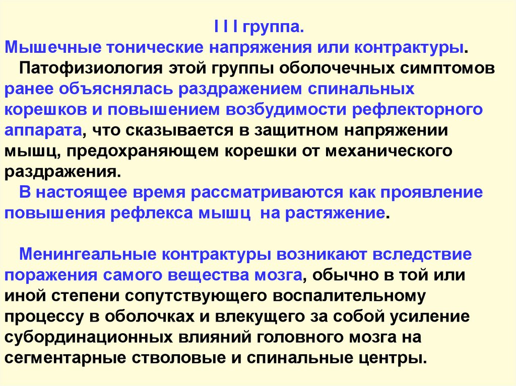 I I I группа.Мышечные тонические напряжения или контрактуры.