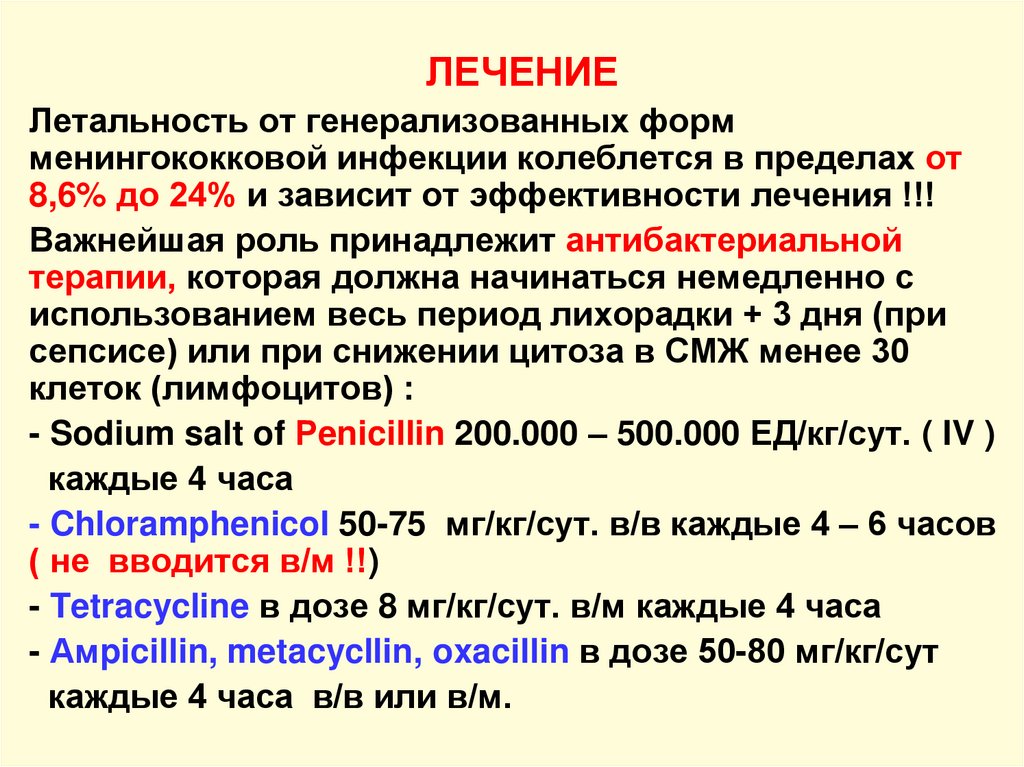 ЛЕЧЕНИЕЛетальность от генерализованных форм