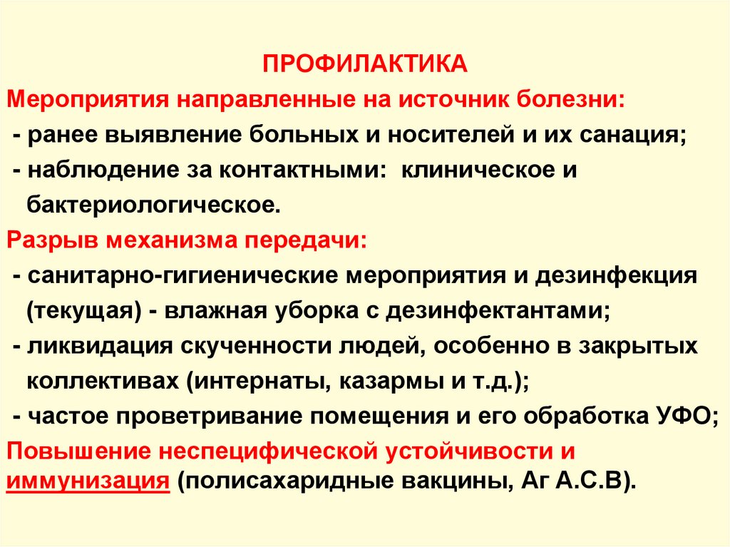 ПРОФИЛАКТИКАМероприятия направленные на источник болезни: