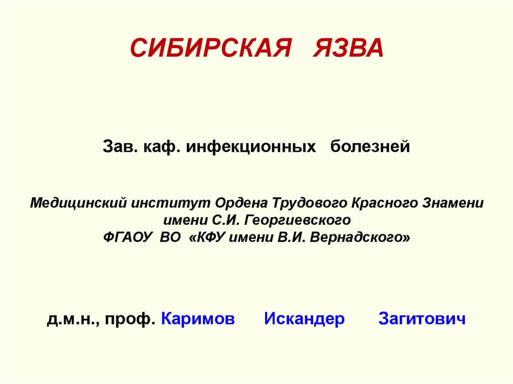 СИБИРСКАЯ ЯЗВАЗав. каф. инфекционных болезней