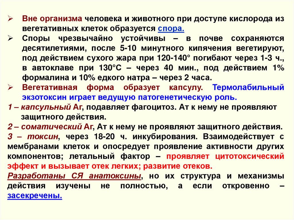 Встречается в 2 формах: бациллярной (вегетативной) и споровой.