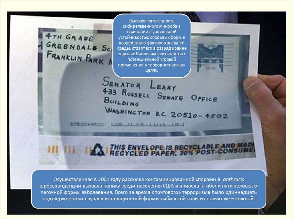 США – 2003 г. умышленное заражение людей боевым штаммом СЯ