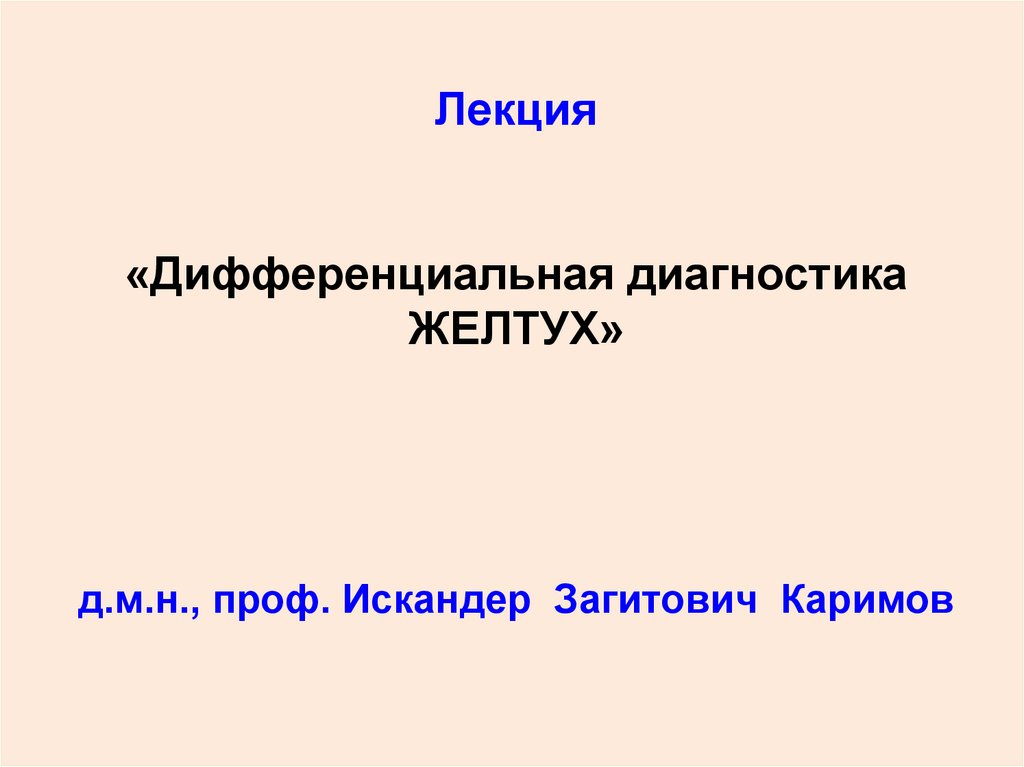 1. Лекция «Дифференциальная диагностика ЖЕЛТУХ» д.м.н., проф. Искандер Загитович Каримов