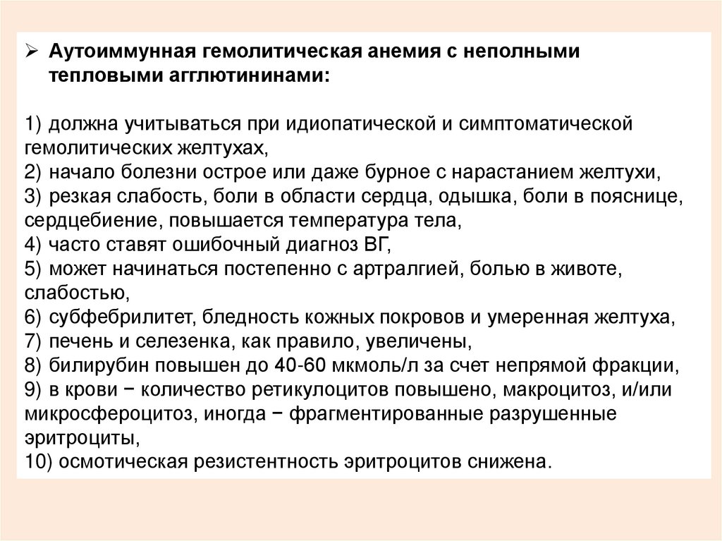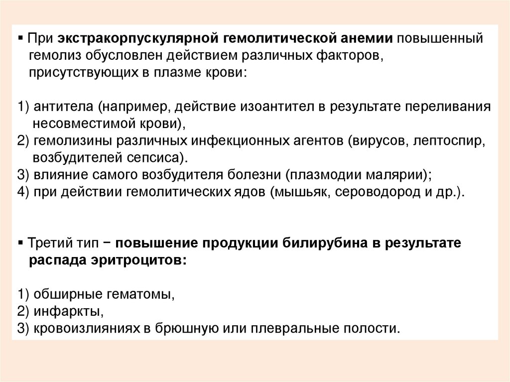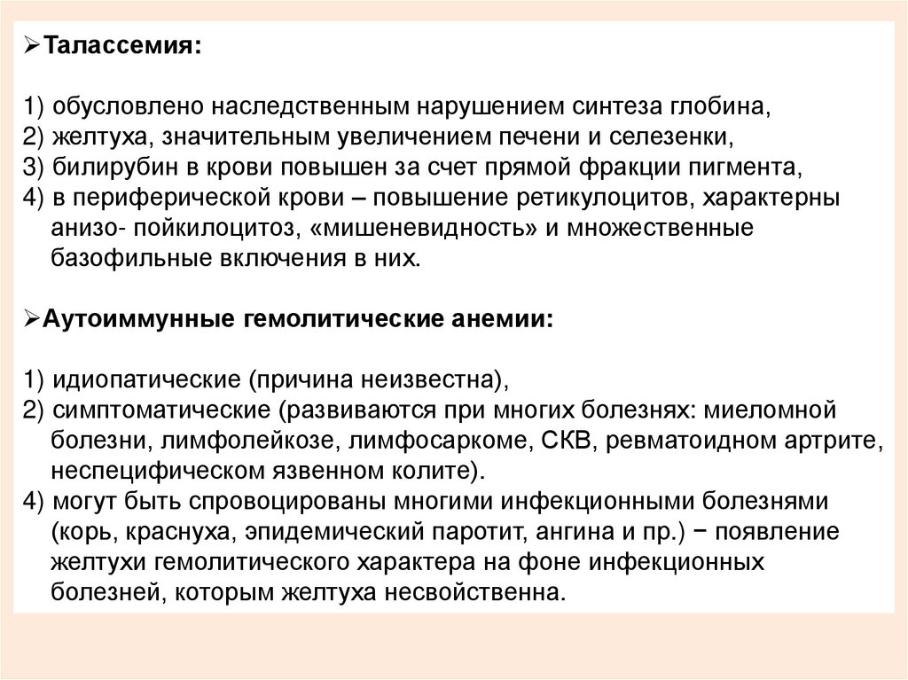 1) дефекты эритроцитов, 2) аутоиммунные гемолитические желтухи,