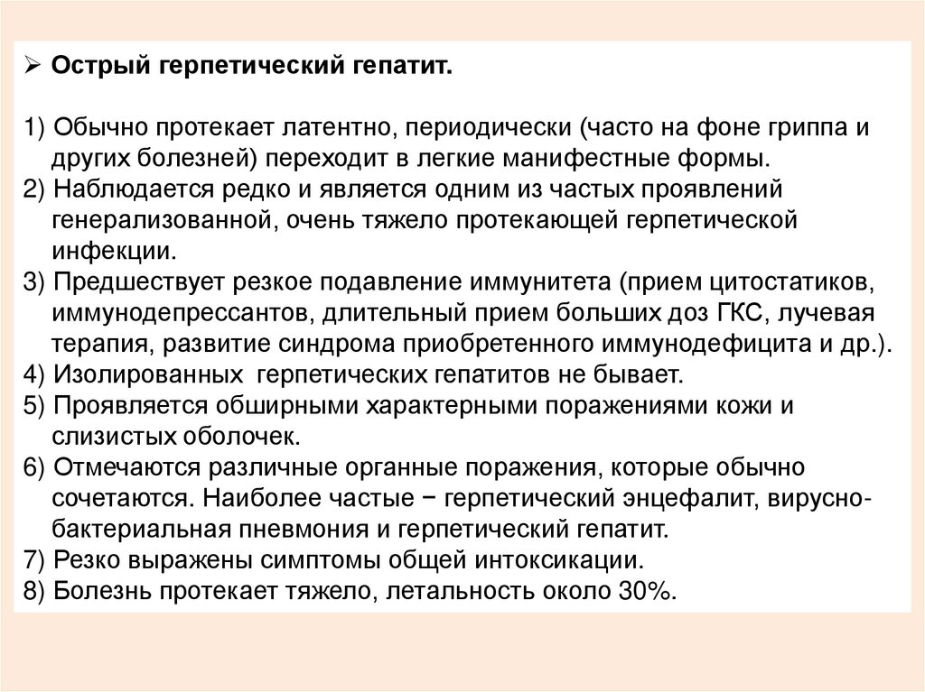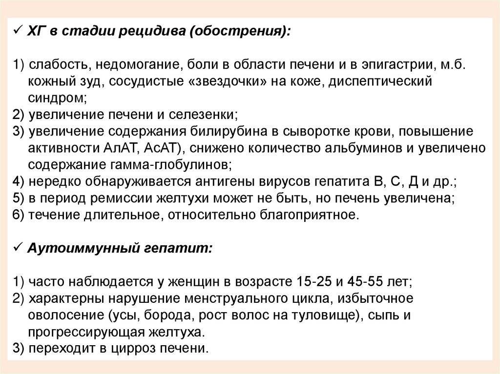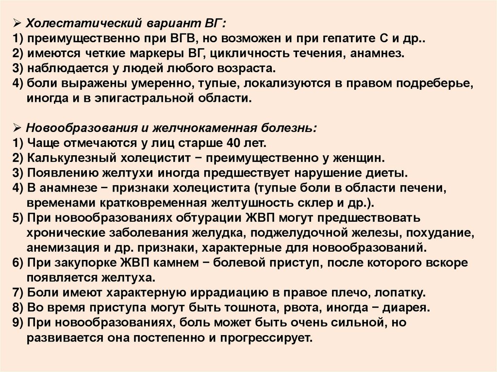 Холестатический вариант ВГ:1) преимущественно при ВГВ, но возможен и при гепатите С и др..