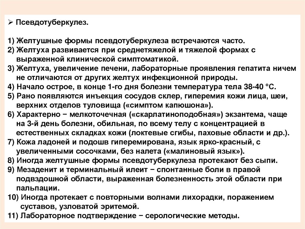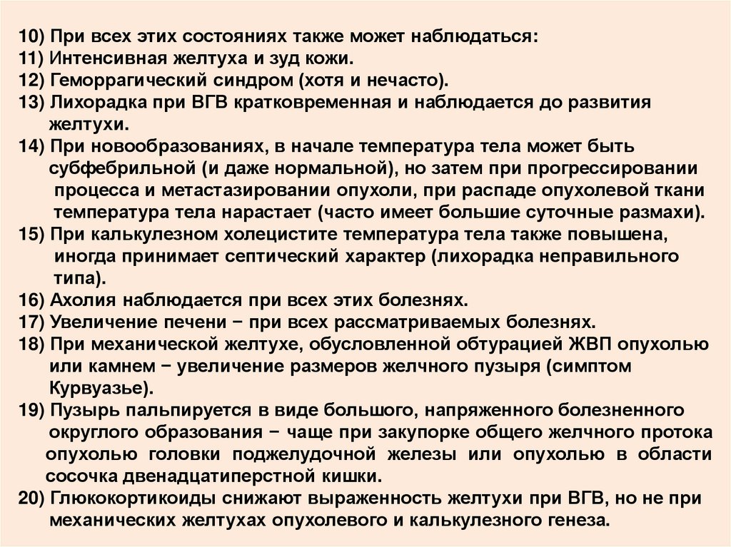 10) При всех этих состояниях также может наблюдаться:11) Интенсивная желтуха и зуд кожи.