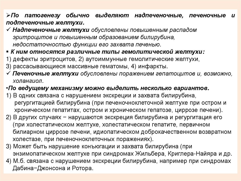 1) В одних связана с нарушением экскреции и захвата билирубина,