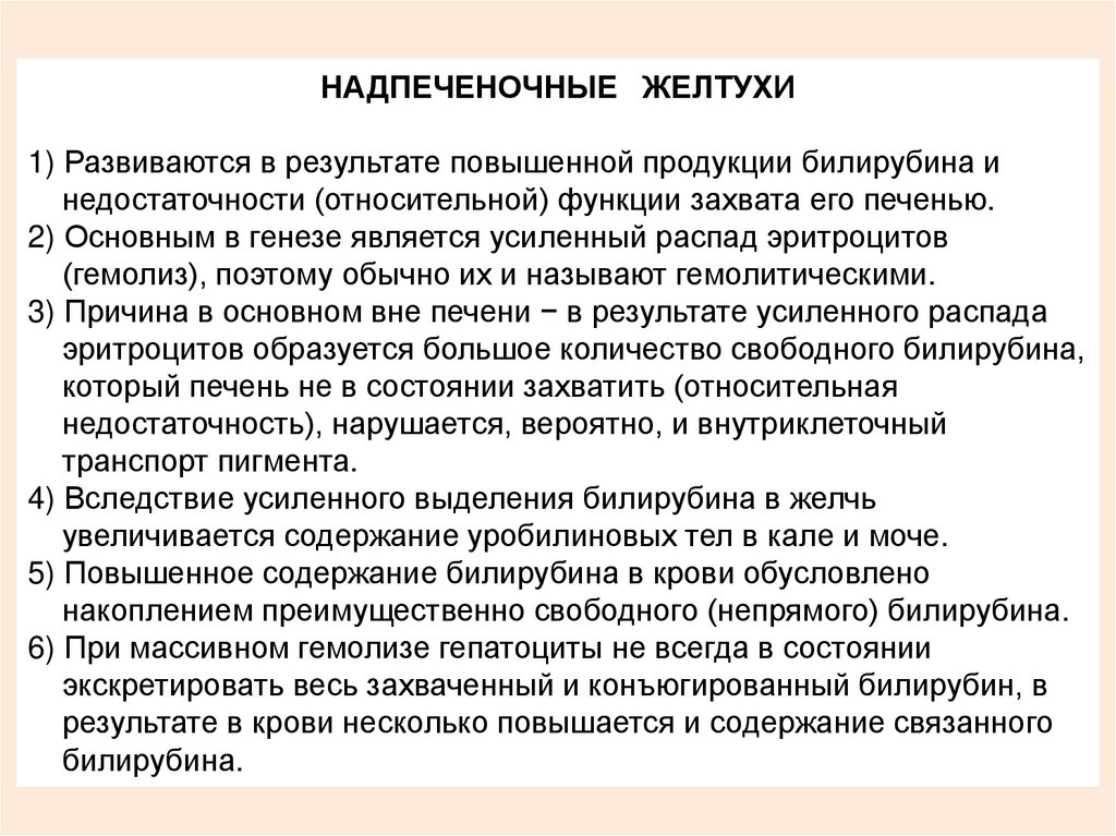 Надпеченочные желтухи обусловлены повышенным распадом