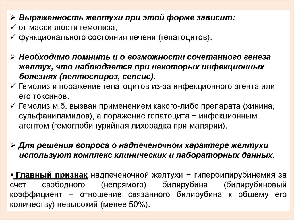 НАДПЕЧЕНОЧНЫЕ ЖЕЛТУХИ1) Развиваются в результате повышенной продукции билирубина и
