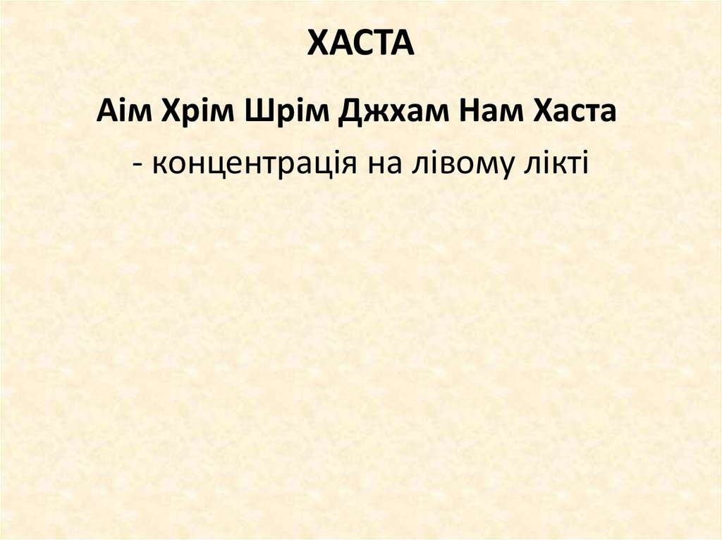 Хаста. Аім Хрім Шрім Джхам Нам Хаста - концентрація на лівому лікті