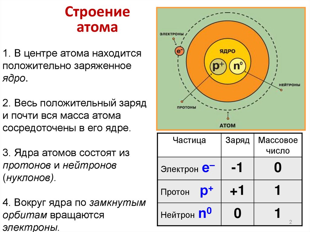 2. Состав ядра атома, общее число электронов в