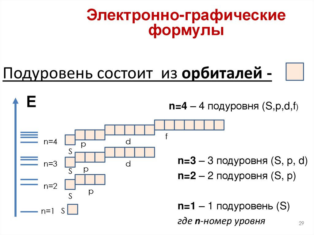номер уровня, вид орбитали и количество