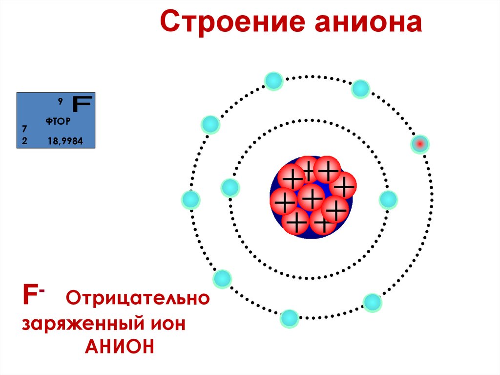 • Анион – (-) заряженная частица, An