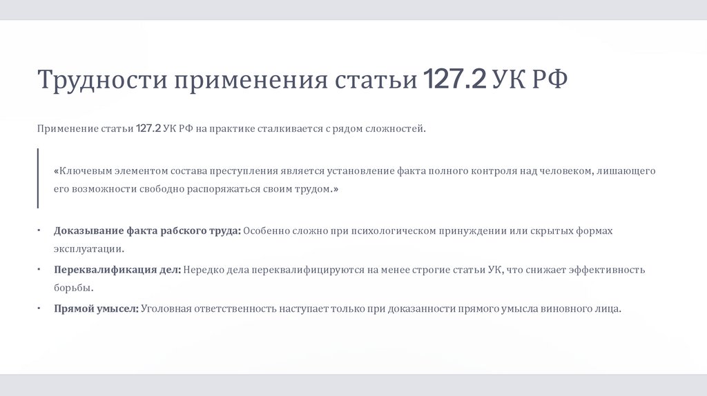 Трудности применения статьи 127.2 УК РФПрименение статьи 127.2 УК РФ на практике сталкивается с рядом сложностей.