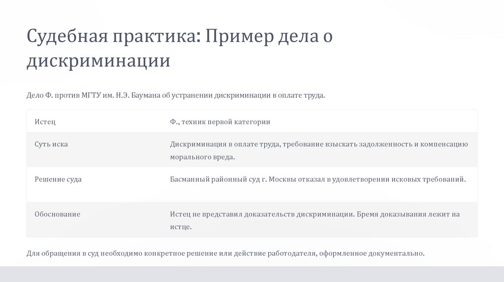Дело Ф. против МГТУ им. Н.Э. Баумана об устранении дискриминации в оплате труда.