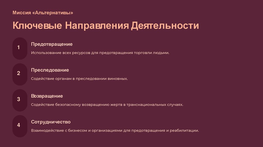 Миссия «Альтернативы»Ключевые Направления Деятельности