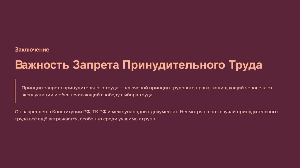 Принцип запрета принудительного труда — ключевой принцип трудового права, защищающий человека от