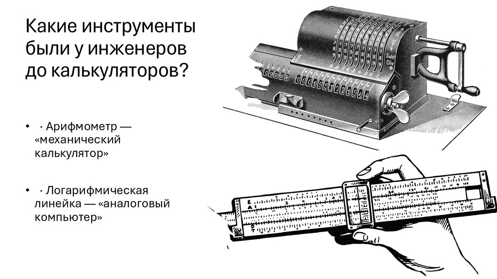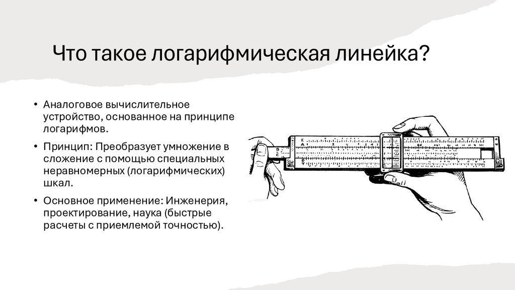 Что такое логарифмическая линейка?• Аналоговое вычислительное