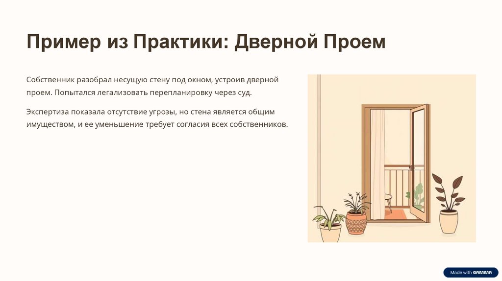 Пример из Практики: Дверной ПроемСобственник разобрал несущую стену под окном, устроив дверной