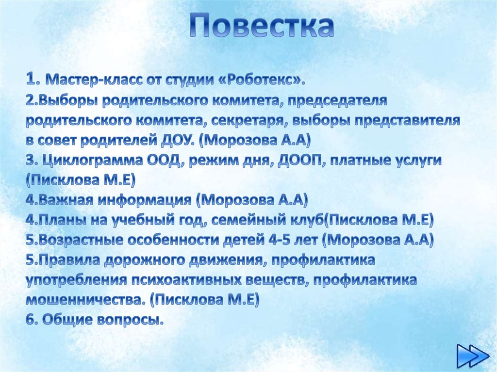 Просьба приводить детей до завтрака (начало завтрака в 8:10).