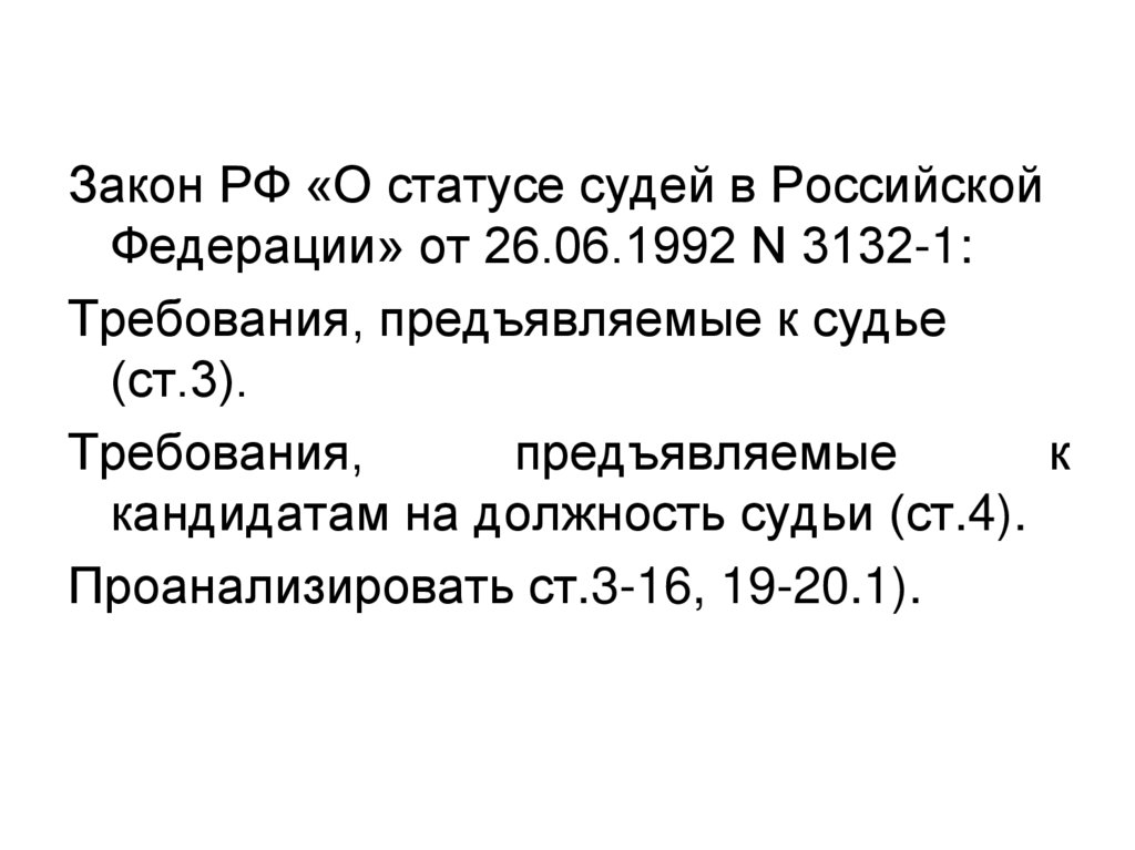 Закон РФ «О статусе судей в РоссийскойФедерации» от 26.06.1992 N 3132-1:
