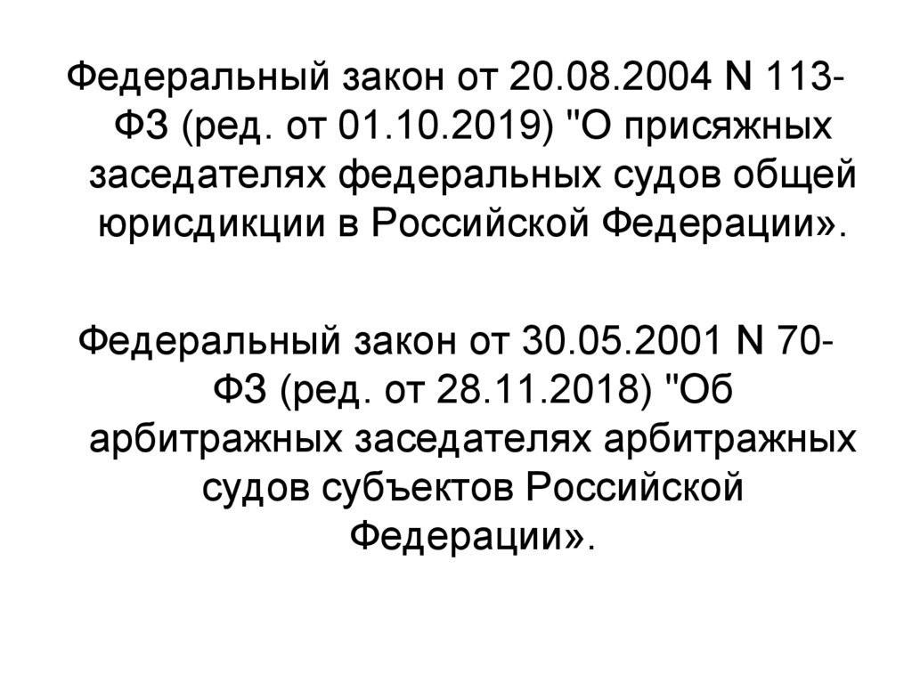 Федеральный закон от 20.08.2004 N 113ФЗ (ред. от 01.10.2019) "О присяжныхзаседателях федеральных судов общей