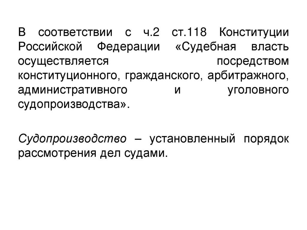 В соответствии с ч.2 ст.118 КонституцииРоссийской Федерации «Судебная власть