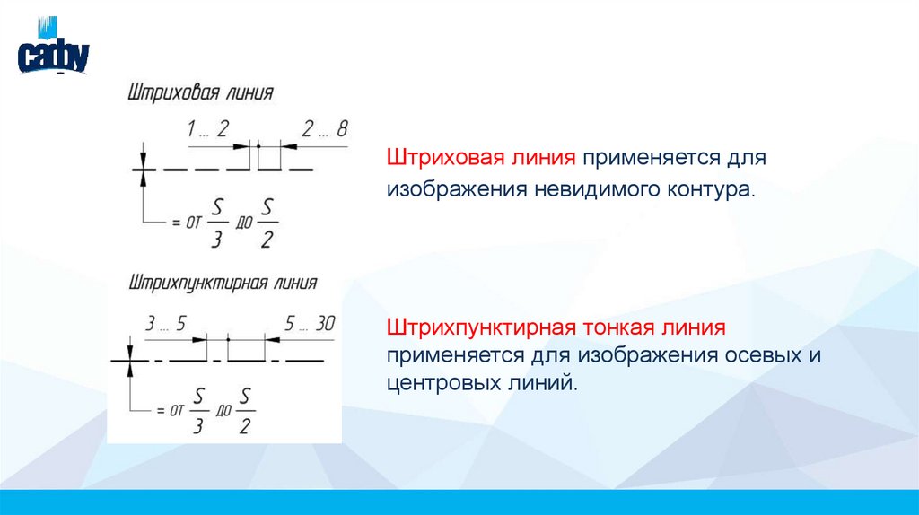 • Толщина S сплошной толстой основной линии должна иметь значение