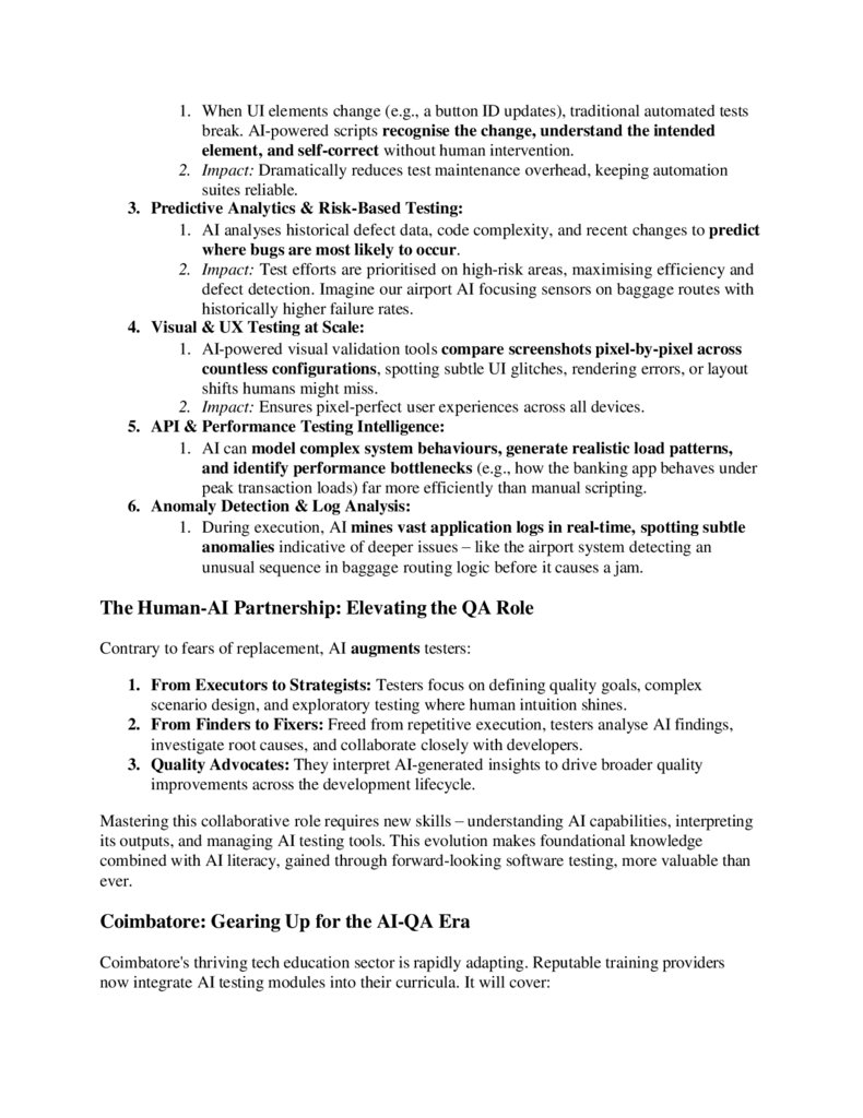 Quality Assurance (QA), shifting testing from manual inspection to intelligent, predictive