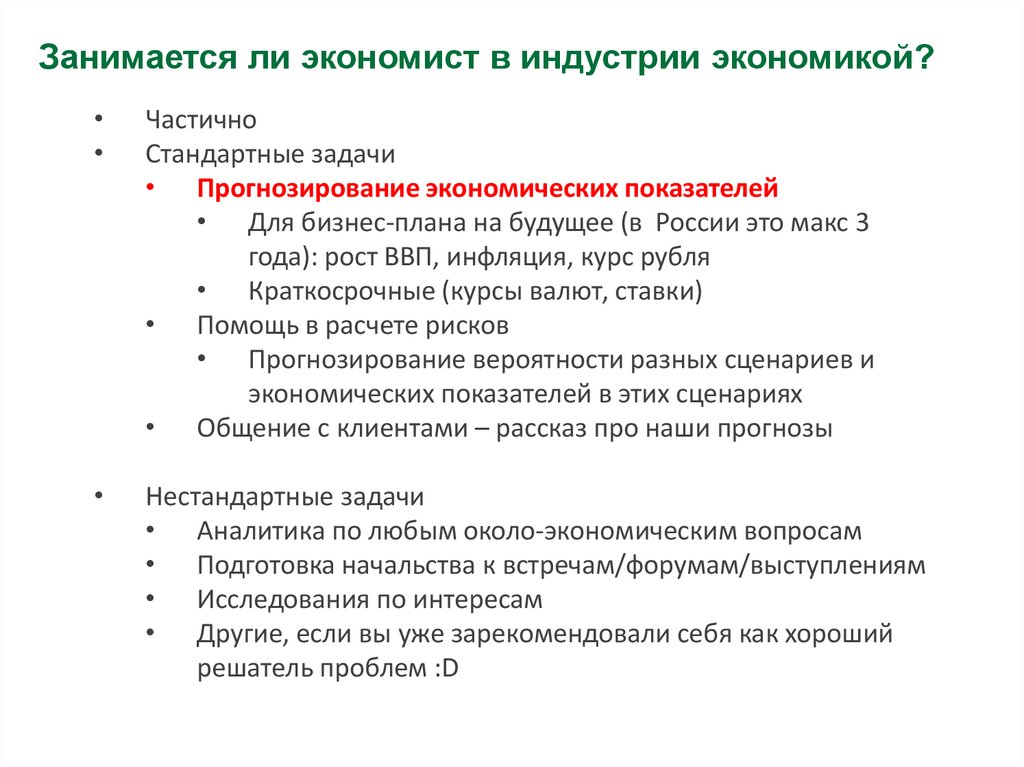 Занимается ли экономист в индустрии экономикой?Частично
