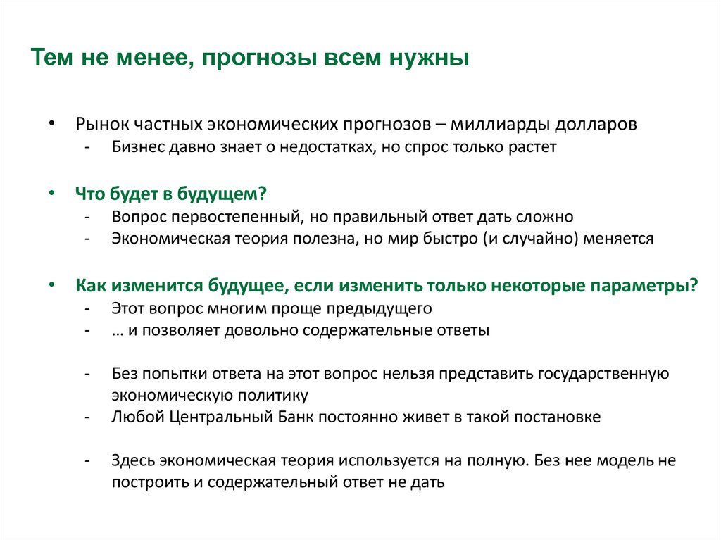 • Сбылся или не сбылся прогноз – не всегда главный критерий
