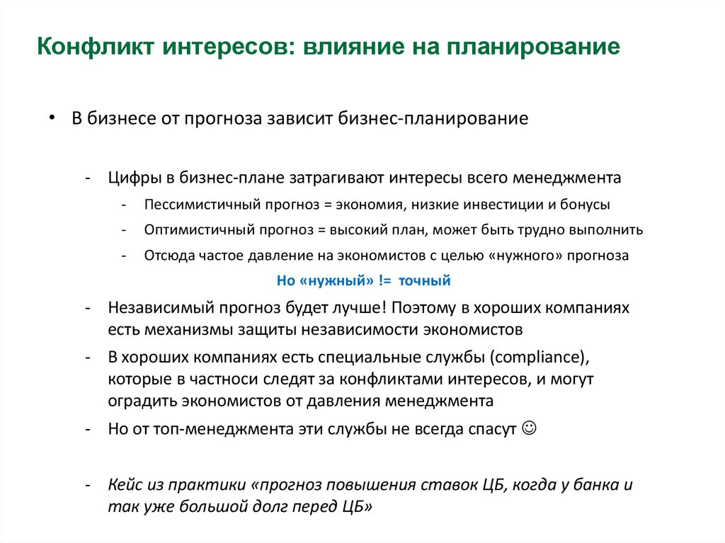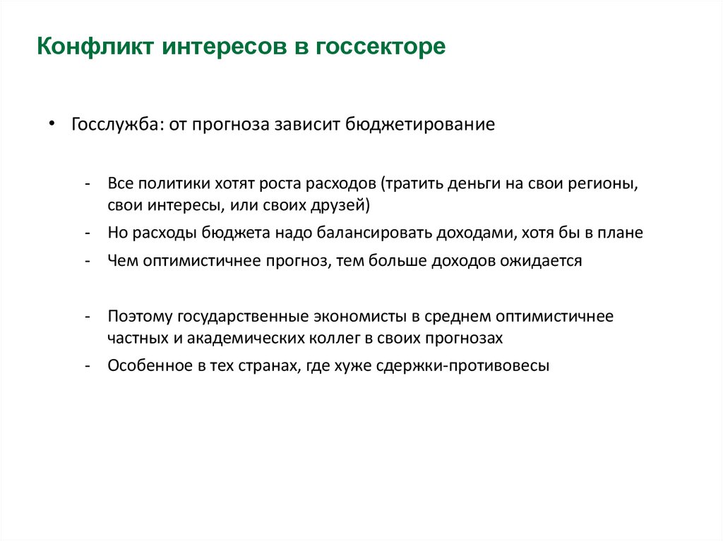 Конфликт интересов в госсекторе• Госслужба: от прогноза зависит бюджетирование