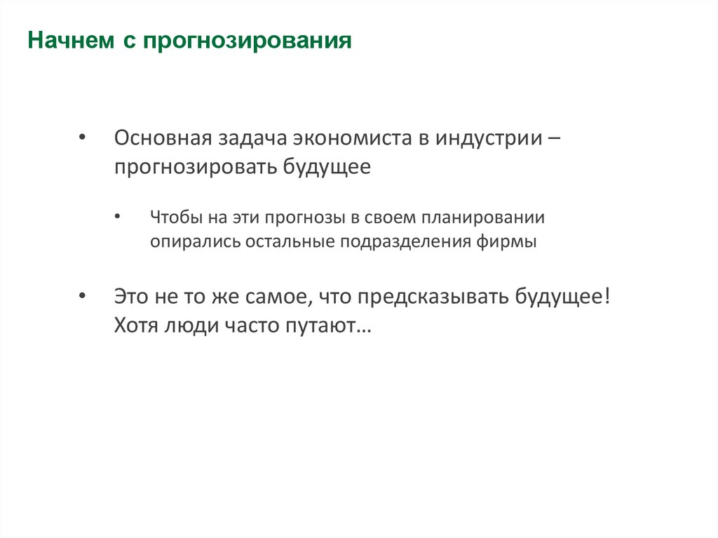 Начнем с прогнозированияОсновная задача экономиста в индустрии –