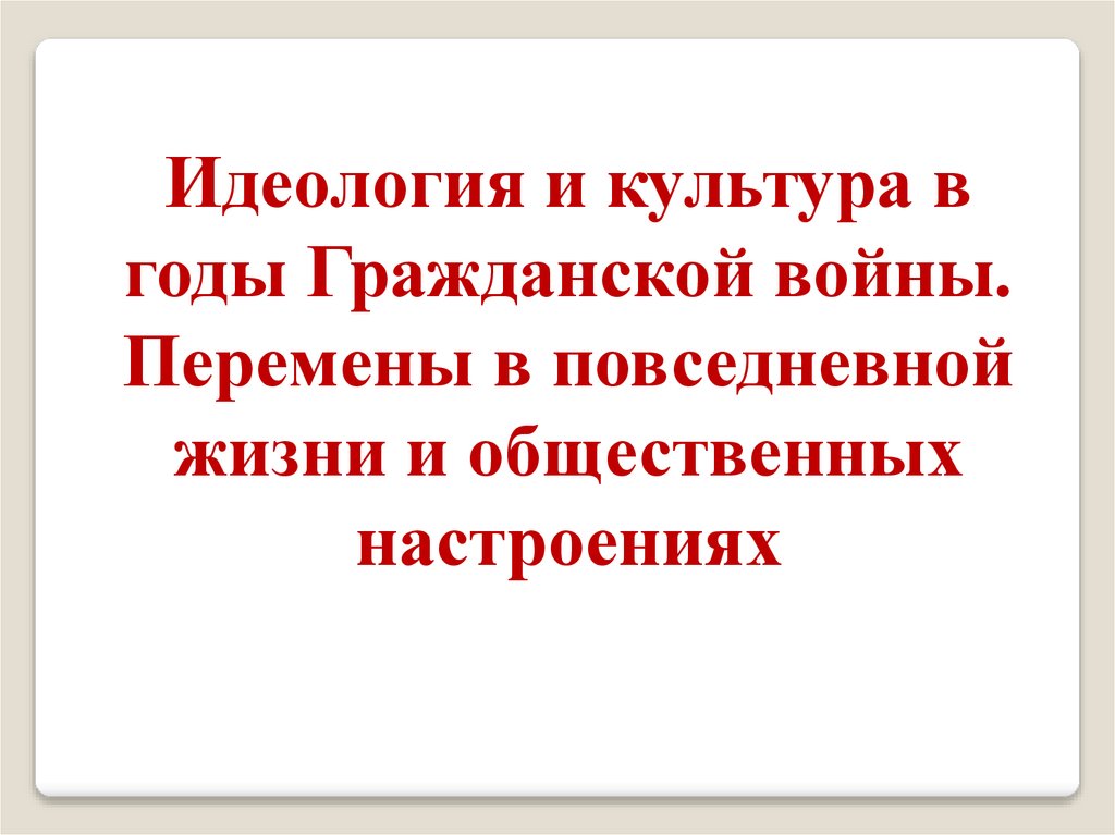 8. Идеология и культура в годы Гражданской войны. Перемены в повседневной жизни и общ