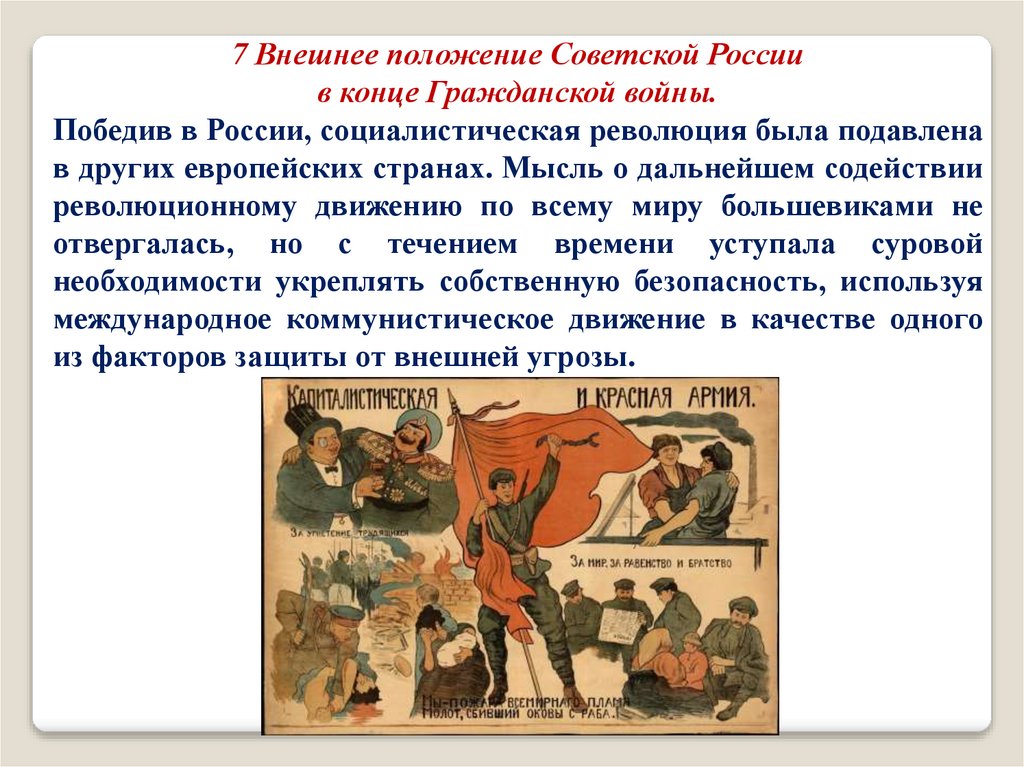 7 Внешнее положение Советской Россиив конце Гражданской войны.