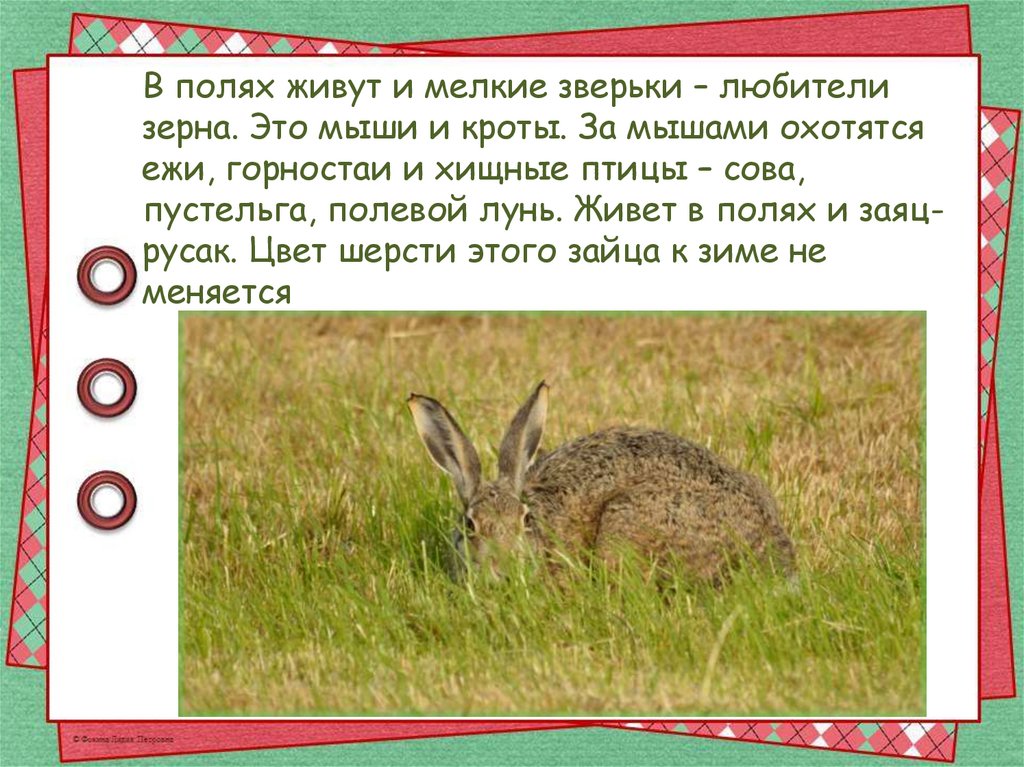В полях живут и мелкие зверьки – любителизерна. Это мыши и кроты. За мышами охотятся