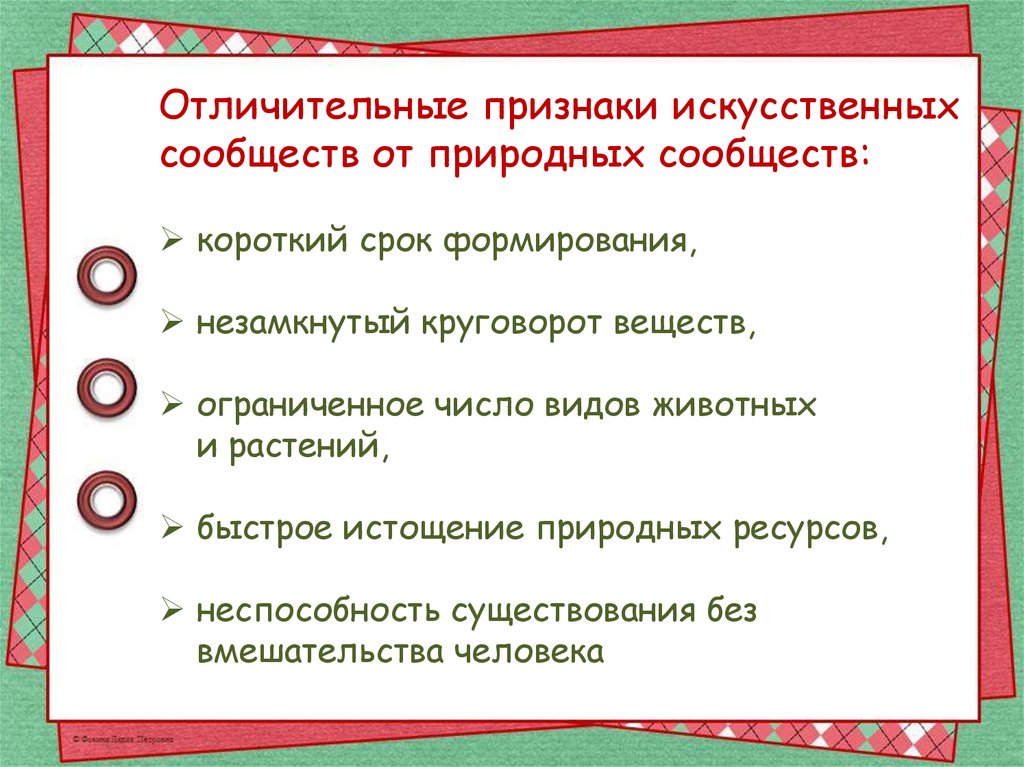 Отличительные признаки искусственныхсообществ от природных сообществ: