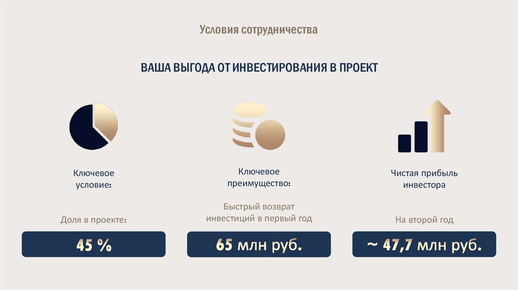 Условия сотрудничестваВАША ВЫГОДА ОТ ИНВЕСТИРОВАНИЯ В ПРОЕКТ