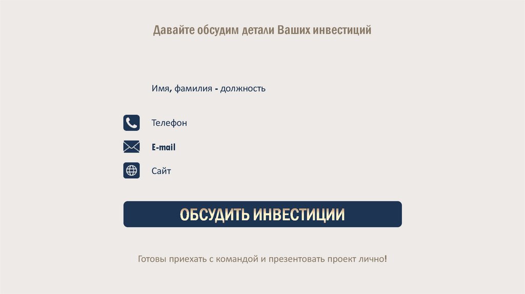 Давайте обсудим детали Ваших инвестицийИмя, фамилия - должность