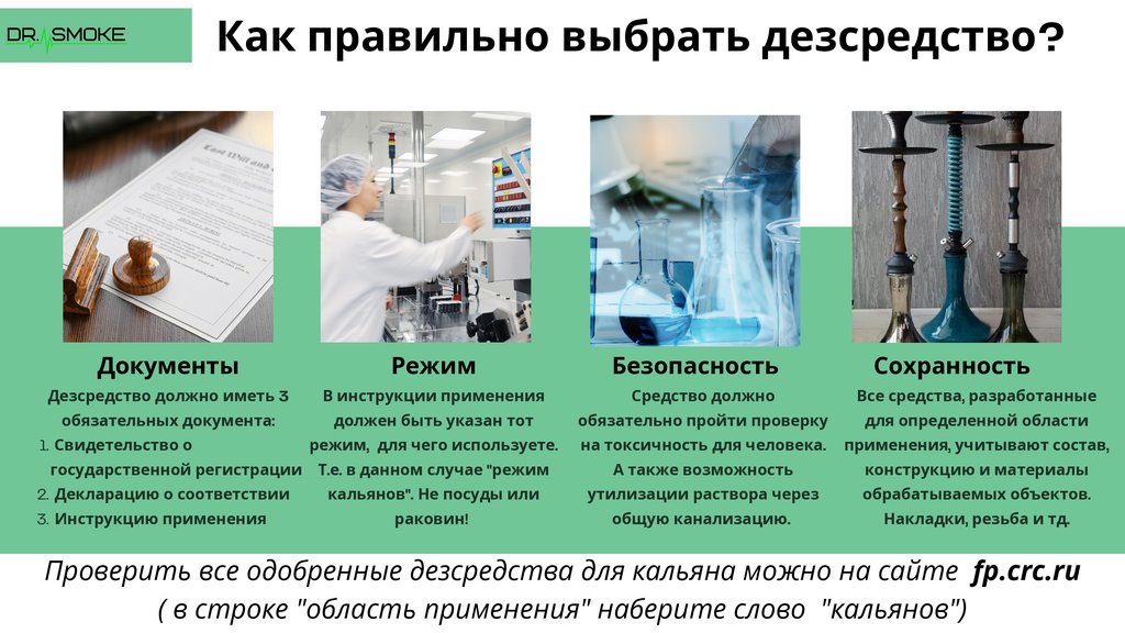 Проверить все одобренные дезсредства для кальяна можно на сайте fp.crc.ru
