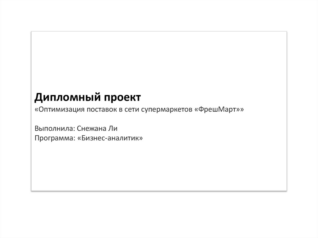 Дипломный проект«Оптимизация поставок в сети супермаркетов «ФрешМарт»»