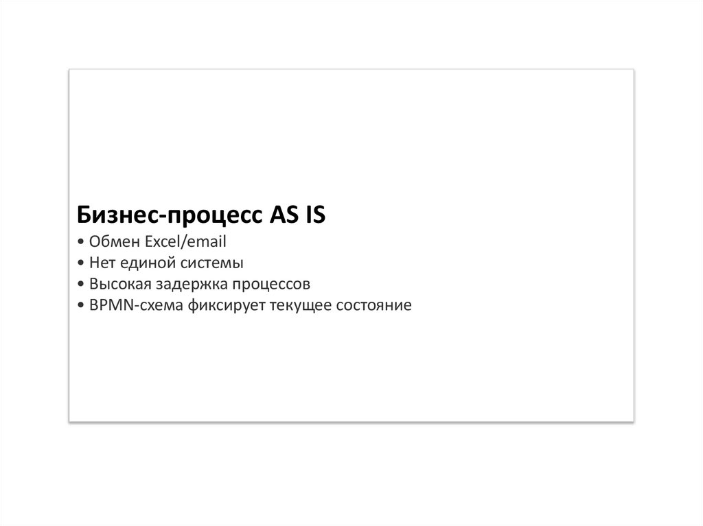 • BPMN-схема фиксирует текущее состояние
