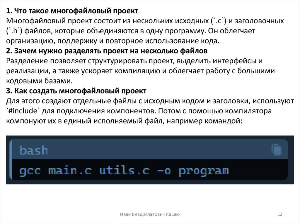 1. Что такое многофайловый проектМногофайловый проект состоит из нескольких исходных (`.c`) и заголовочных