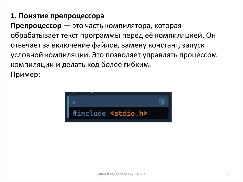 1. Понятие препроцессораПрепроцессор — это часть компилятора, которая