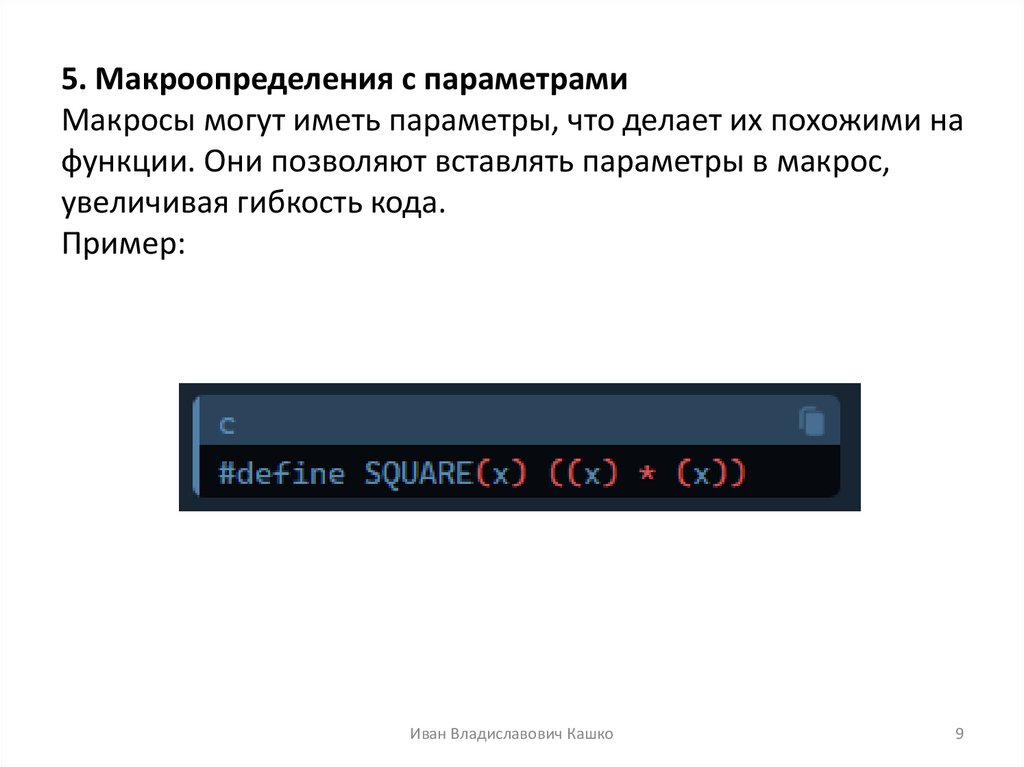 5. Макроопределения с параметрамиМакросы могут иметь параметры, что делает их похожими на