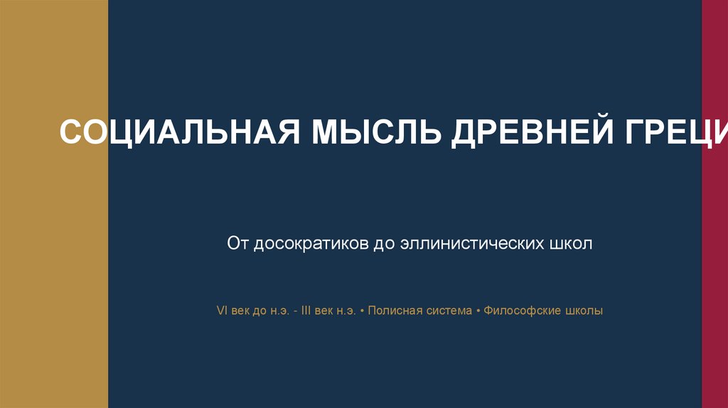 СОЦИАЛЬНАЯ МЫСЛЬ ДРЕВНЕЙ ГРЕЦИОт досократиков до эллинистических школ