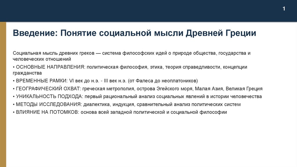1Введение: Понятие социальной мысли Древней Греции